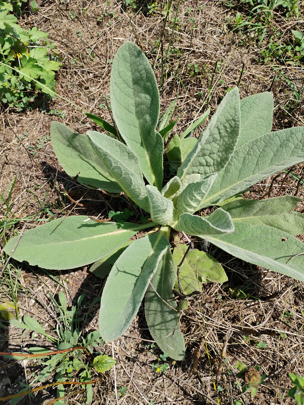 Look at this gorgeous first-year mullein! Mullein has a two-year life cycle; the first year it forms these low rosettes and the second year it grows a SUPER tall stalk.