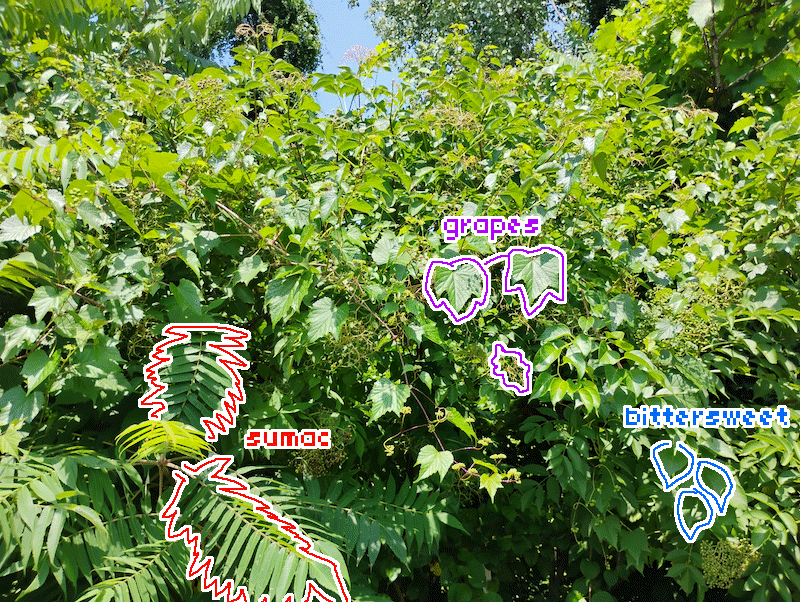Here you can sorta see how the trees in the background are being overtaken by grape and bittersweet:
